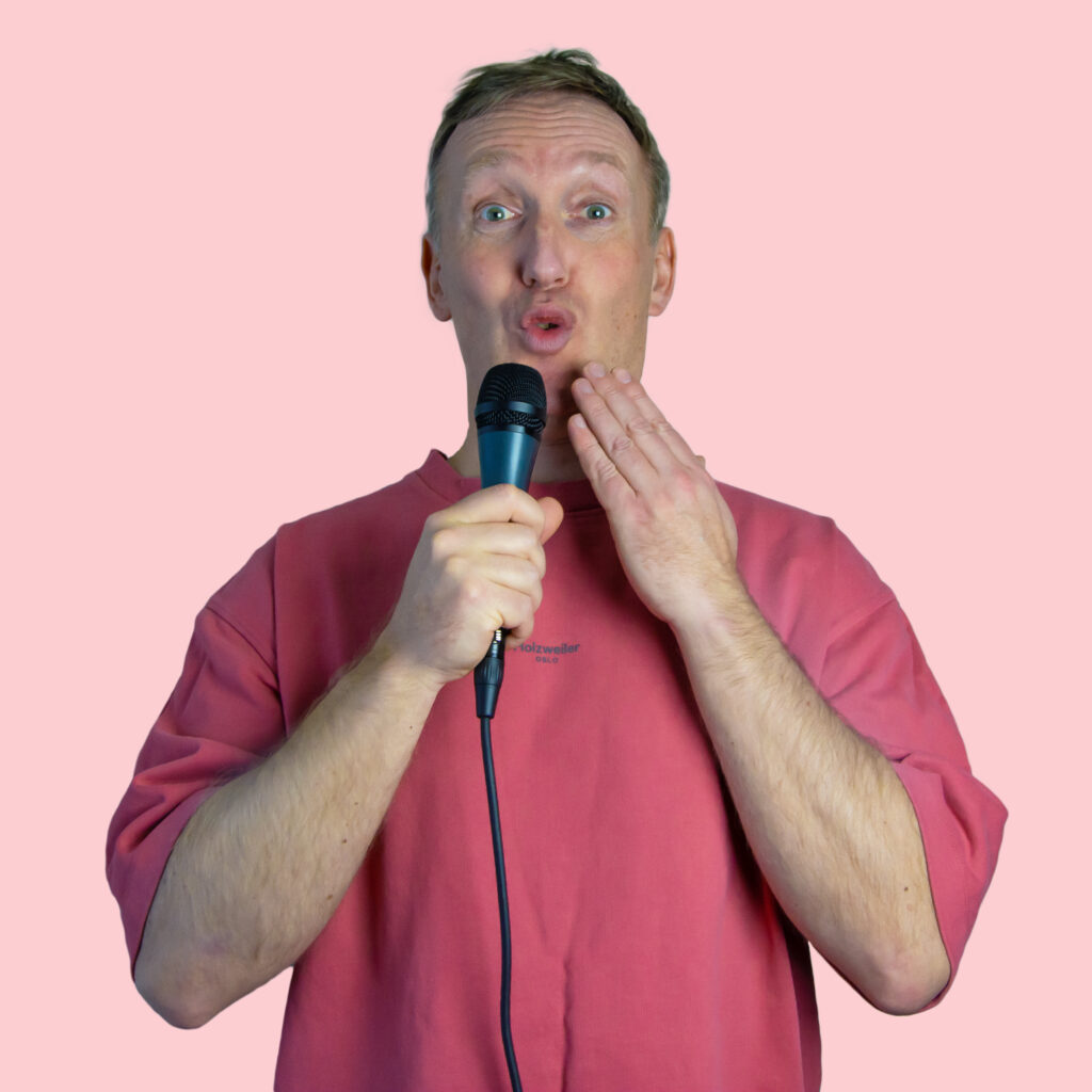 Jeg er nok ikke blant de drøyeste komikerne du har vært borti, men jeg forsøker å kompensere for dette med kunnskap om målgruppa, språklig styrke og litt galskap.